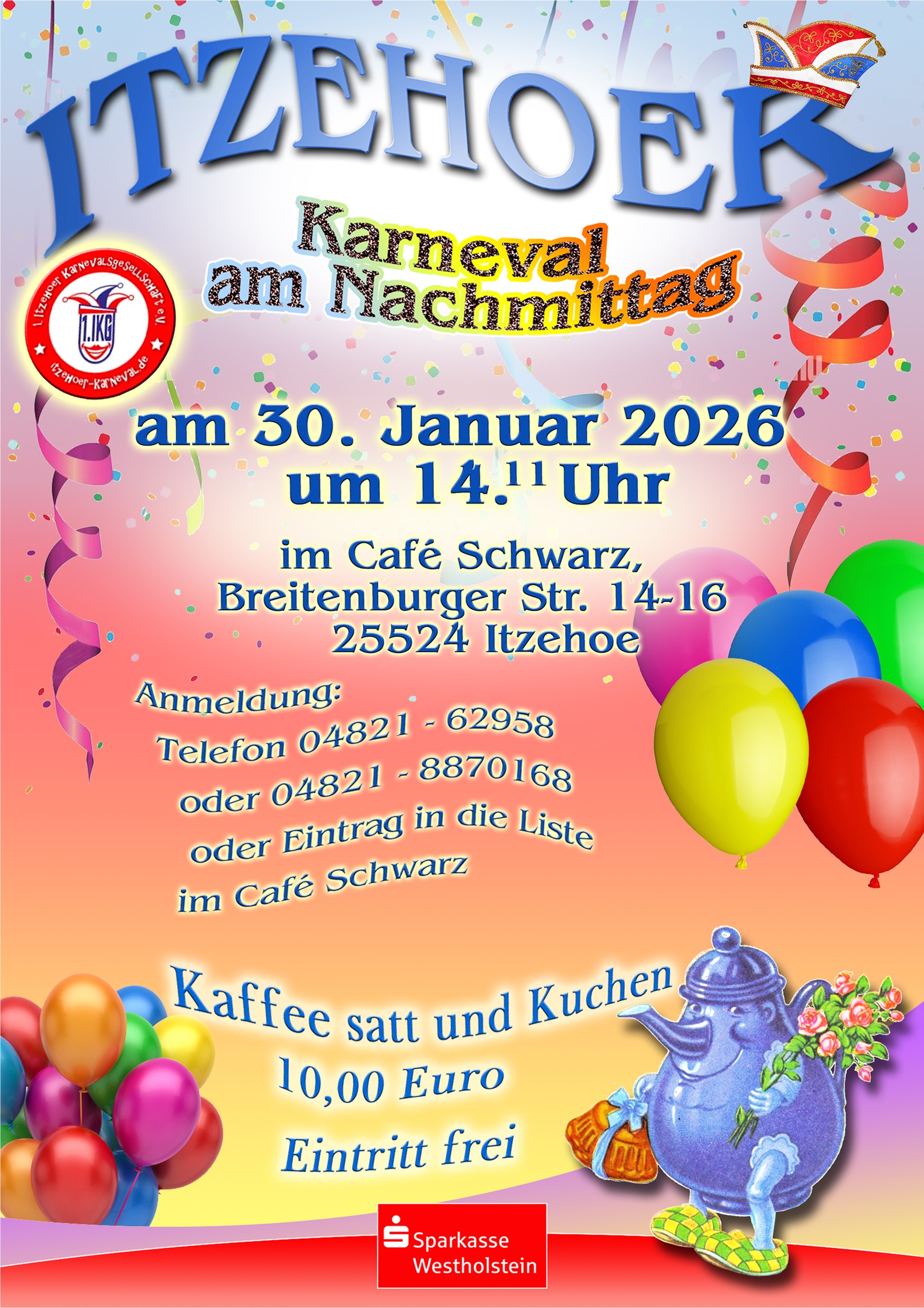 Die 1. Itzehoer Karnevalsgesellschaft lädt herzlich zum Karneval am Nachmittag ein! 🎭💃
